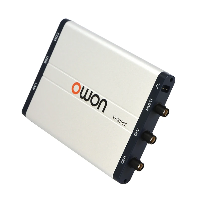 OWON VDS серии осциллограф для ПК-Пропускная способность до 100 МГц и максимальная частота образцов в режиме реального времени 1GS/s-Длина записи 10 м-Дружественный пользовательский интерфейс: FFT, или X-Y, и отображение формы волны 2 видаНа том же экране-Опция мульти-триггера: кромка, видео, наклон, импульсный и альтернативный-Изоляция через USB-меньшее значение сигнала, большая защита ПК-Питание от USB и пульт дистанционного управления LAN (опционально)-Ультратонкий дизайн корпуса, удобная портативность