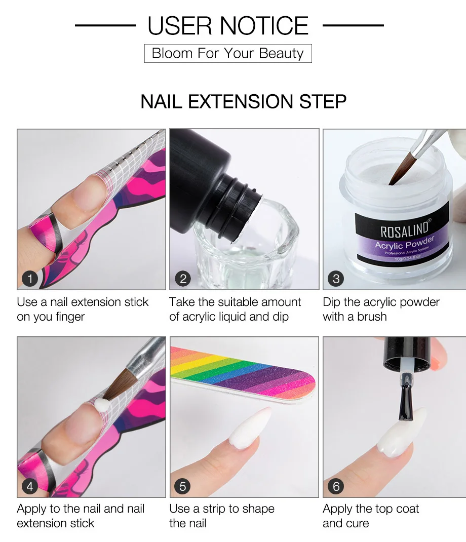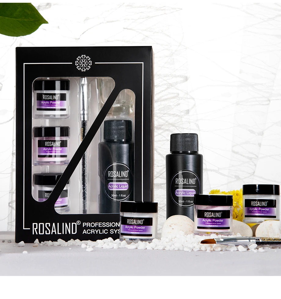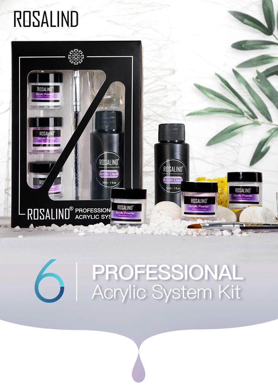 Бренд: ROSALIND Название: акриловый набор вес: 150 г используется для: наращивания ногтей и резьбы по ногтям в комплекте: акриловый порошок * 3, акриловая жидкость, ручка для резьбы и стеклянная чашка