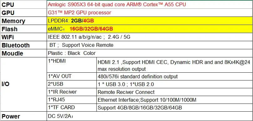 -Процессор: Amlogic S905X3 64-битный четырехъядерный ARM®Кортекс™А55