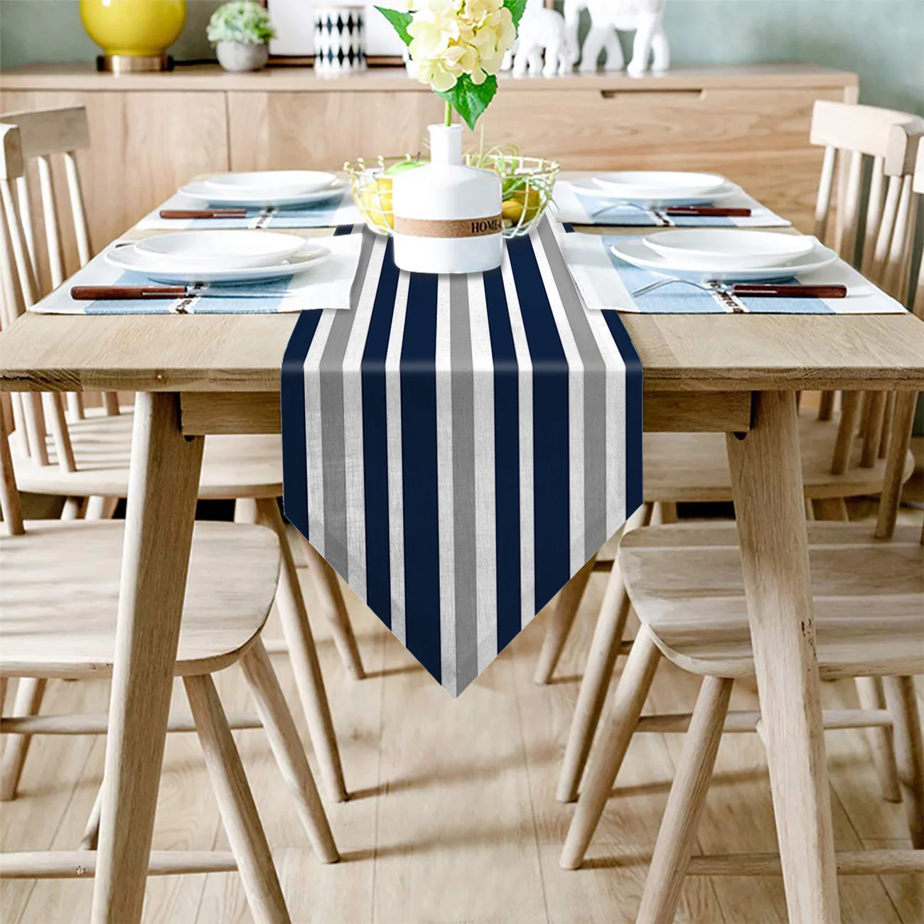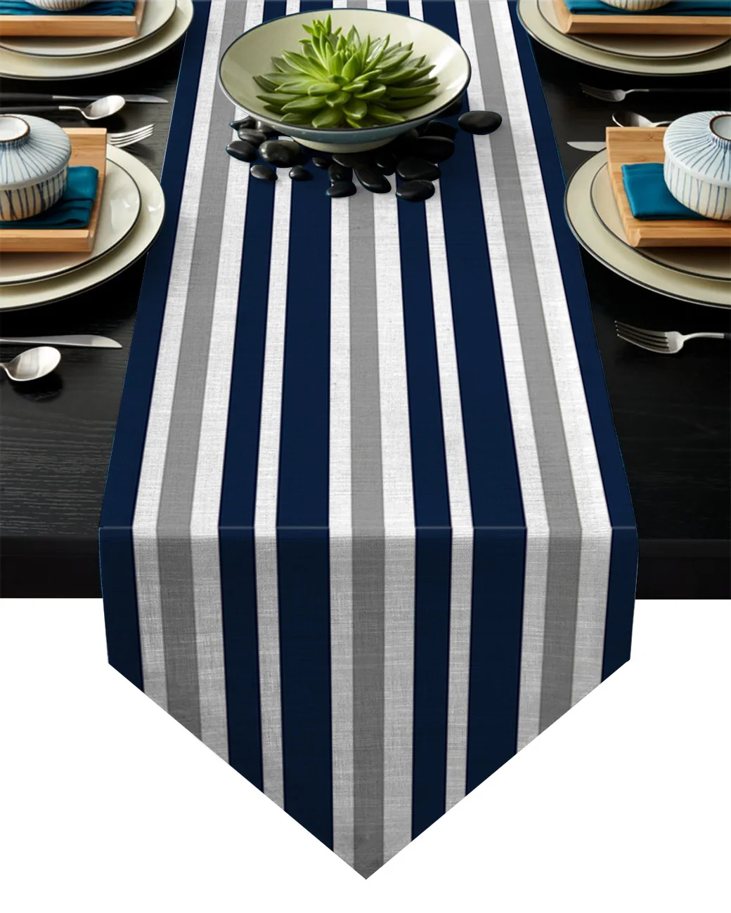 Полосатая синяя белая серая настольная дорожка, украшение для кухни, скатерть с флагом, салфетки для отеля, дома, праздничное украшение, настольная дорожка s