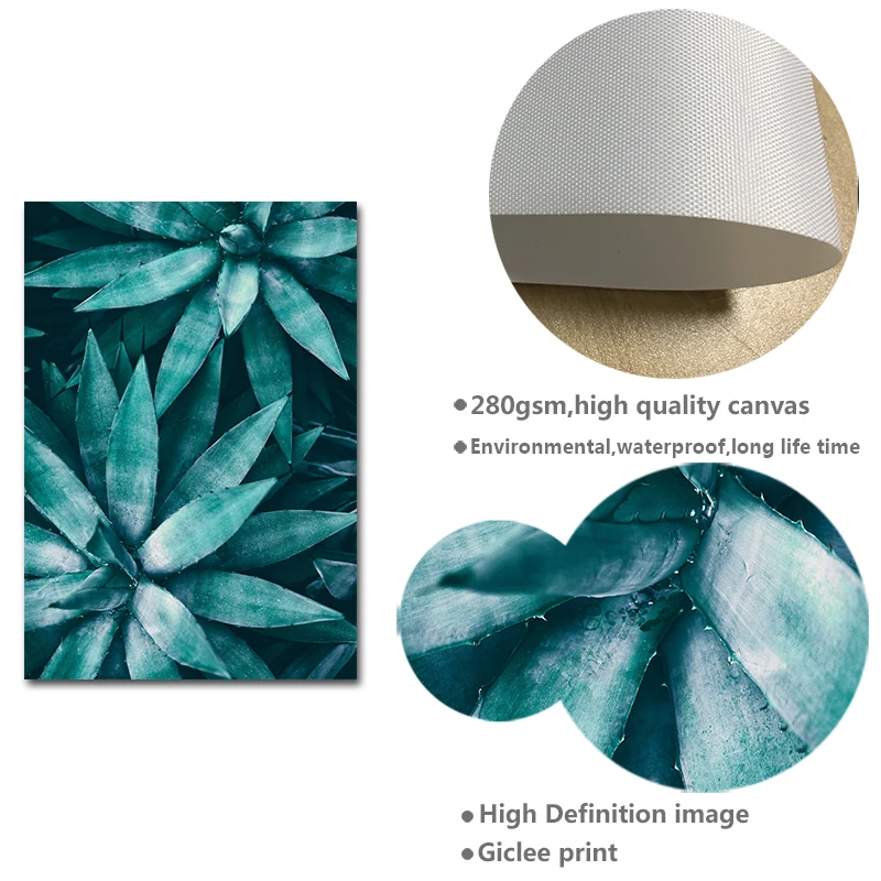 Зеленые суккулентные растения, листья, холст, плакат, настенное иск...
