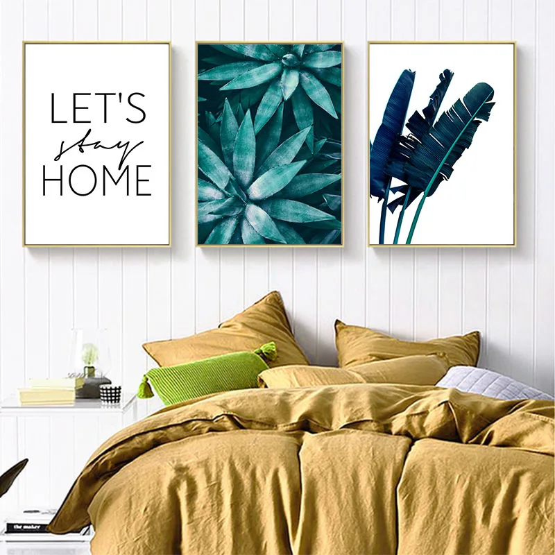 Холщовый плакат с листьями растений, мотивационные цитаты в скандин...