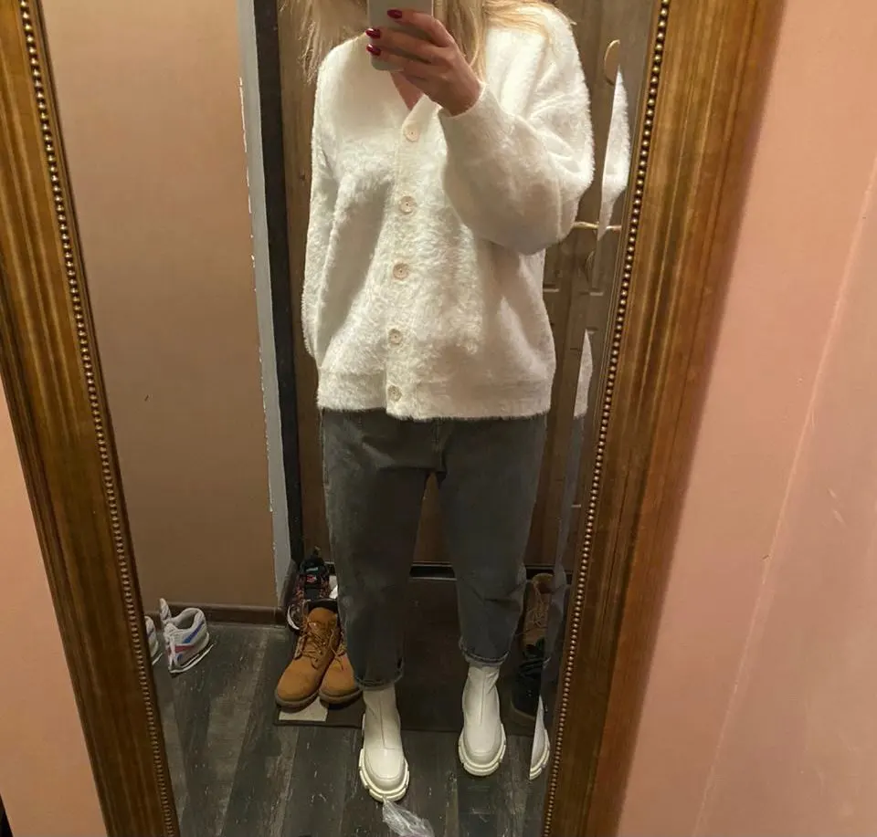 Ну ооочень мягкая кофточка, белоснежная , все как пишут в комментариях. Все верно, все соответствует описанию. Доставка супер Мега быстрая, 10 дней до Москвы. Нужно только привыкнуть к размеру оверсайз