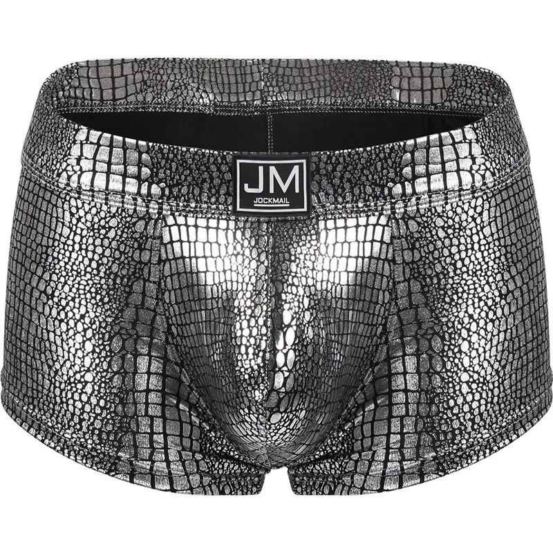 Трусы-боксеры jockmail мужские, пикантное нижнее белье из змеиной кожи, гей-трусы с карманом для пениса, трусы-боксеры для ЛГБТ