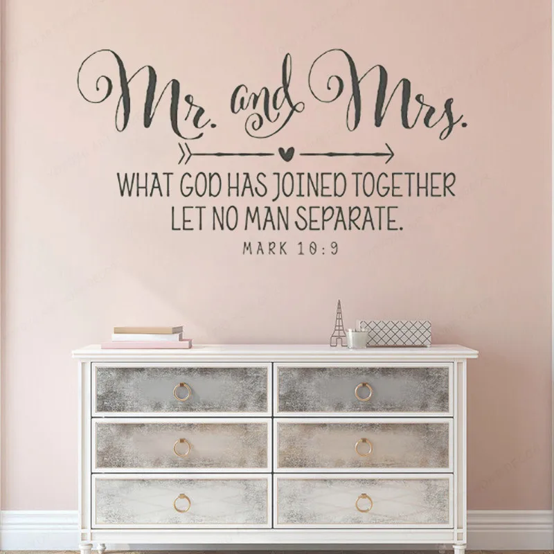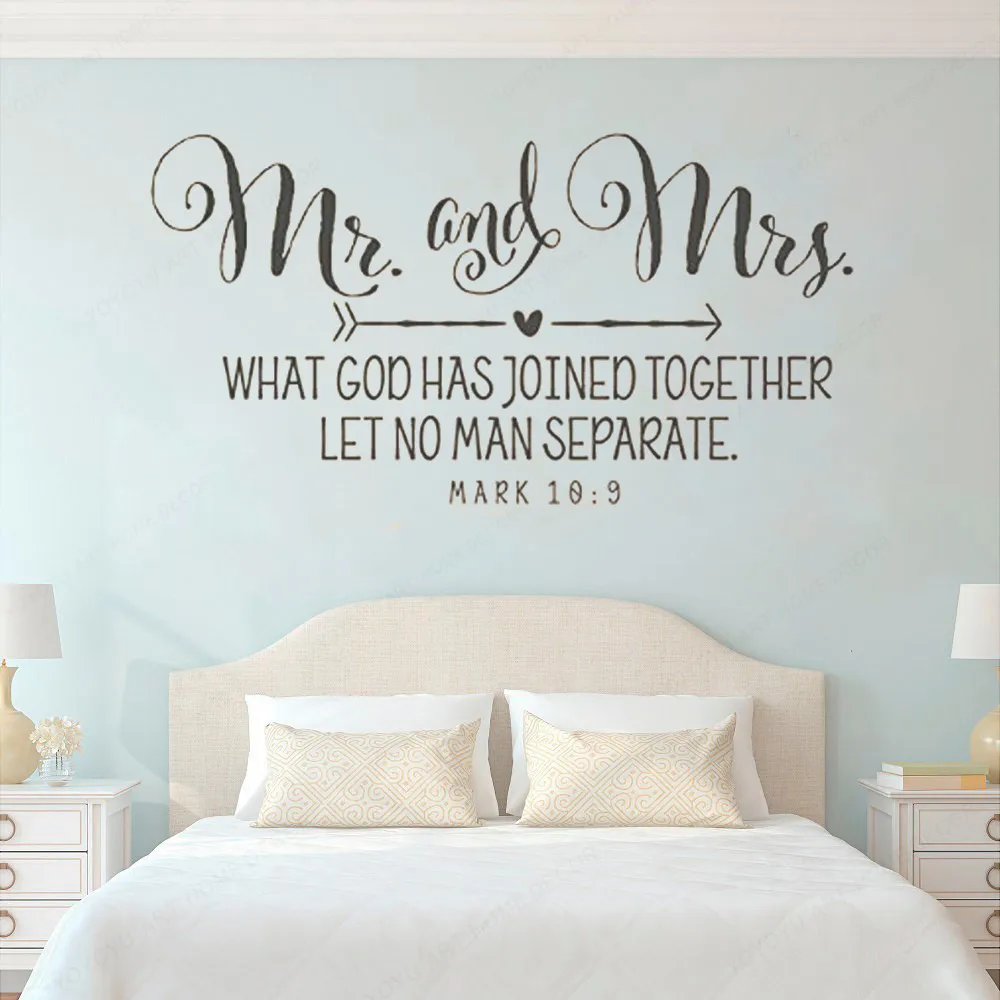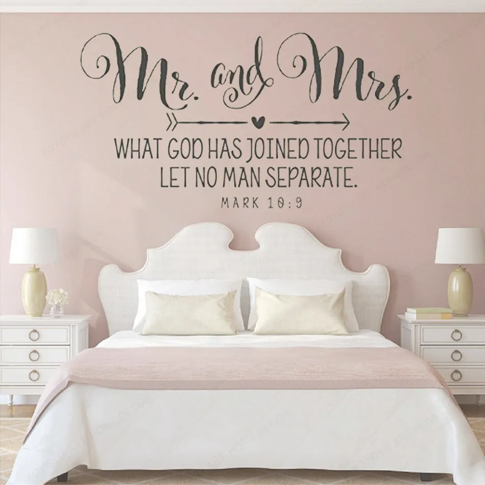 Настенная Наклейка yoyoyoyu, Мистер и миссис, что Бог соединена, не человек, отдельная марка 10, 9, романтическая цитата, украшение для спальни,