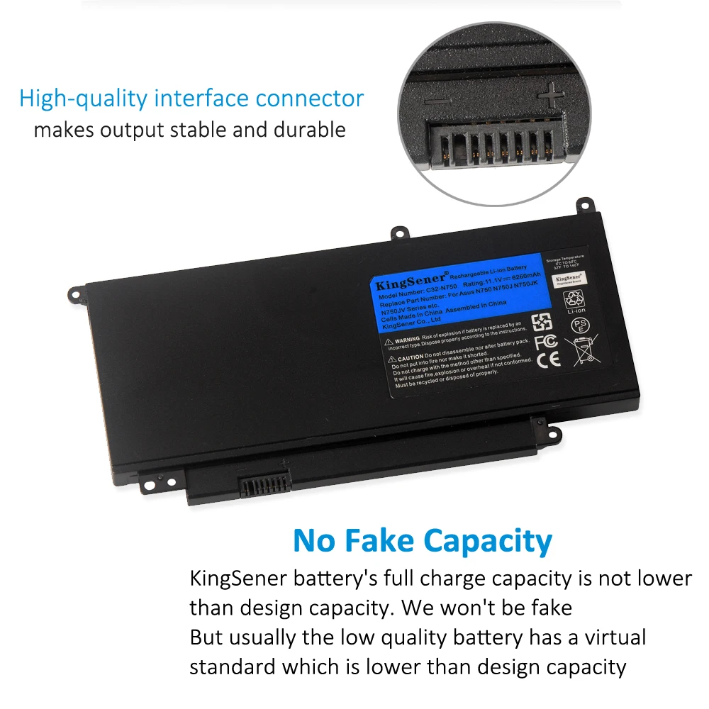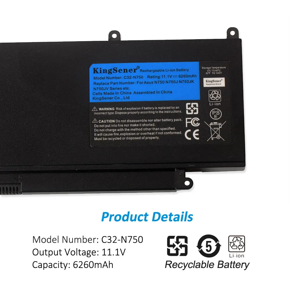 KingSener C32-N750 Аккумулятор для ноутбука ASUS N750 N750J N750JK N750JV N750Y47JK-SL N750Y47JV-SL 11,1 V 6260mAh69WH