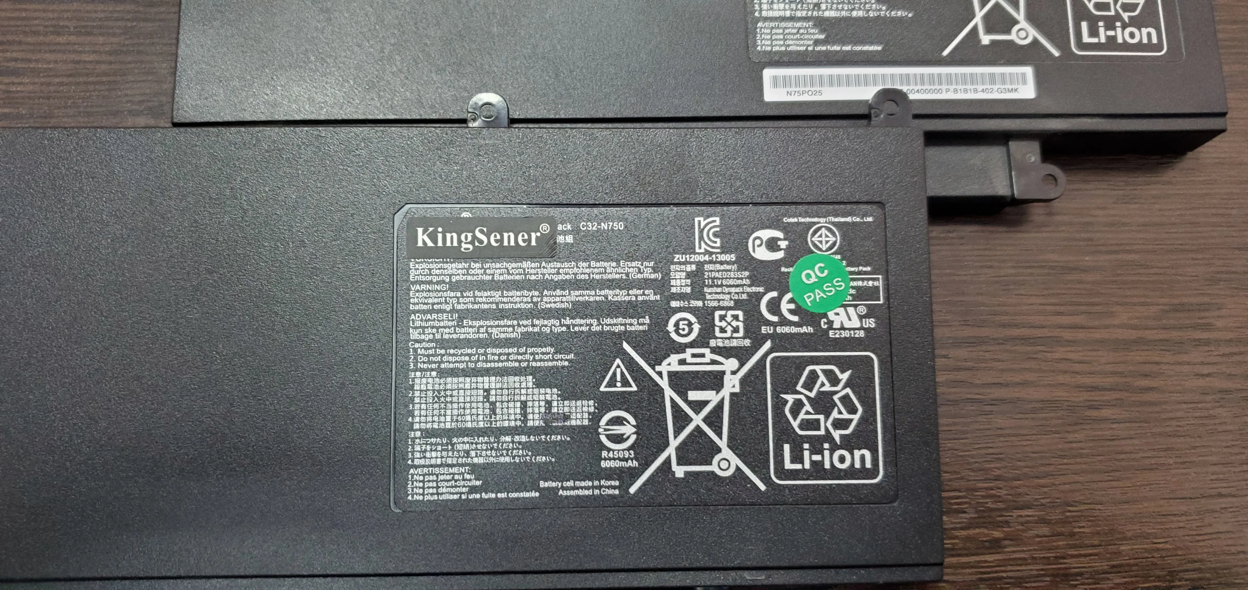 Курьер СДЭК привез домой батарею. По виду оригинал. Прикол это наклейка KingSener сверху надписи Asus. Похоже кто-то на заводе Асус делает левак. По AIDA64 износ новой батареи уже 3%. Ну и ладно. На старой износ был 90%.