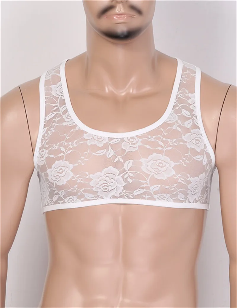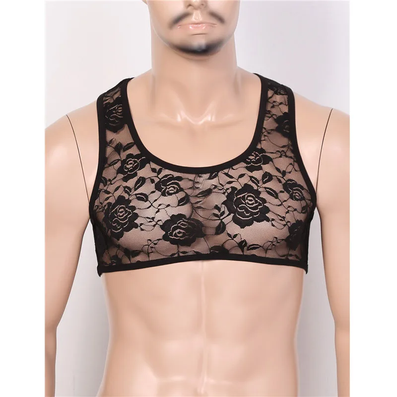 Номер моделиMens sissy stretchy floral lace short vest crop tops sexy Sleepwear