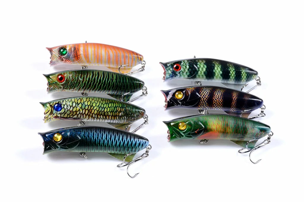 1 шт. 3D цветной рисунок плавающий Поппер рыболовные приманки 3D глаза приманка топвотер кренкбейт воблеры с тройными крючками Рыболовная Снасть