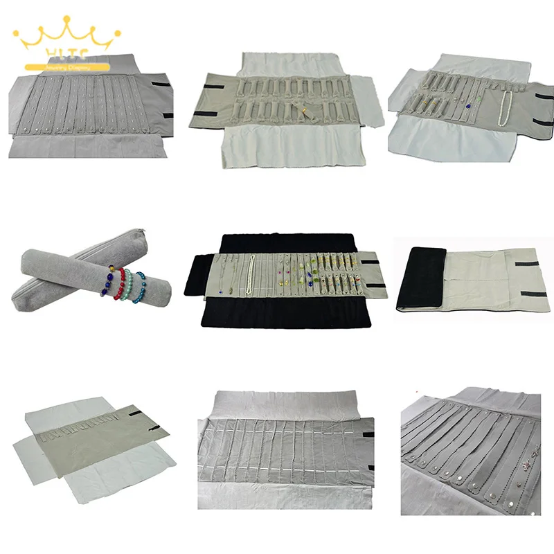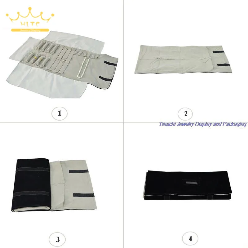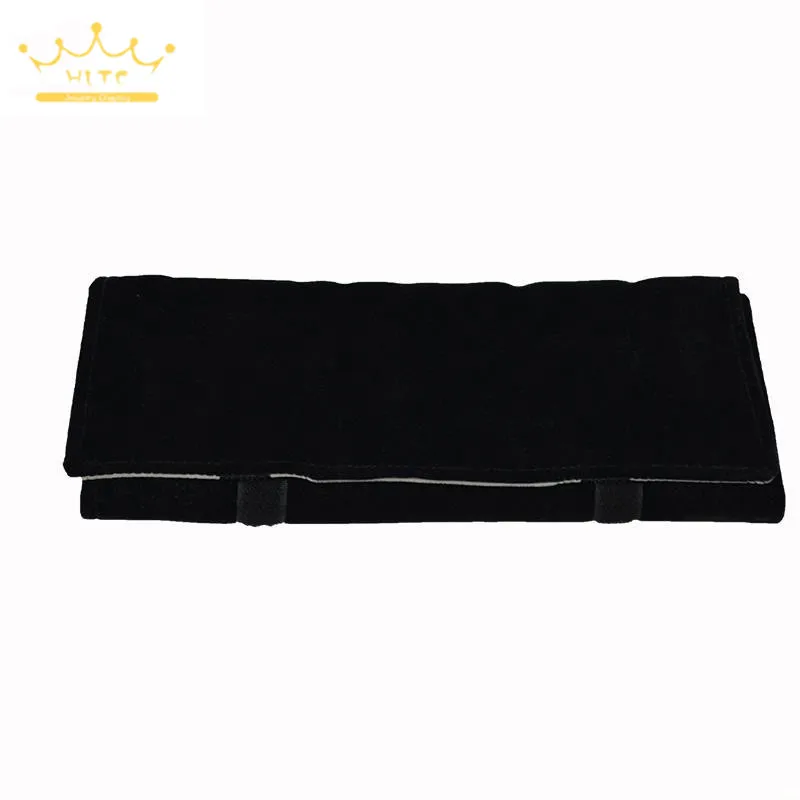 Портативный дорожный Органайзер ручной работы, сумка для ювелирных изделий, черный бархат, сумка в рулоне, кольцо, ожерелье, браслет, серьги, сумка в рулоне, 1 шт.