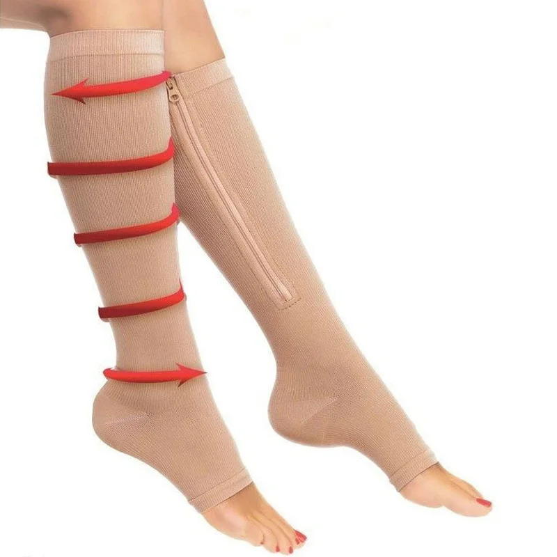 Носки компрессионные женские, на молнии, с открытым носком, для предотвращения варикозного расширения вен, 1 пара