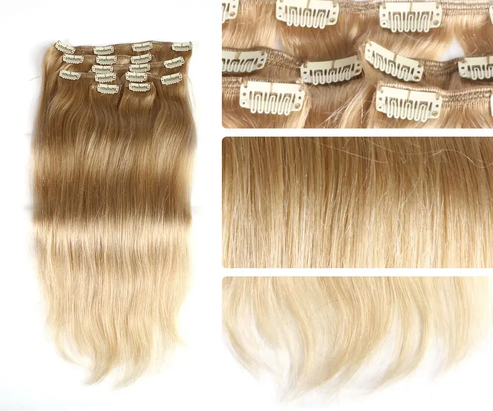 120 г человеческие волосы для наращивания на заколках, бразильские волосы Remy, прямые волосы #1 # 1B #4 #8 #613 #27 12 дюймов-24 дюйма, 7 шт.компл., полная головка