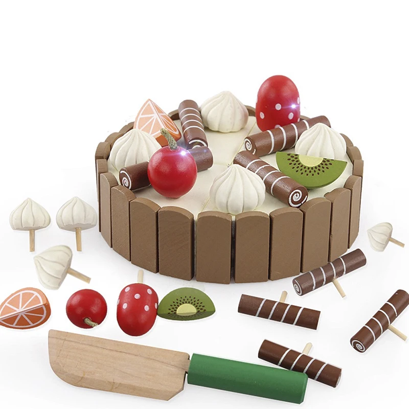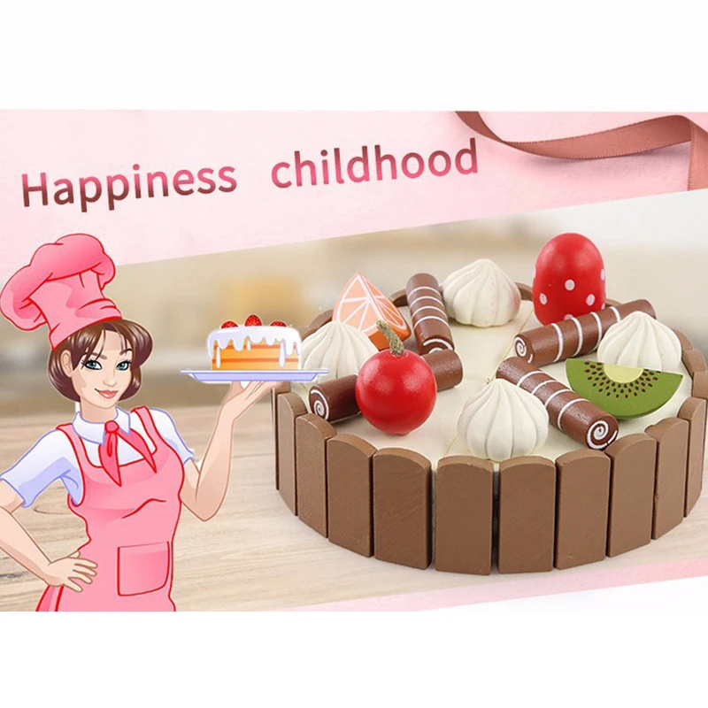 Милая деревянная игрушка для резки фруктовых тортов, ролевые игры на кухне, деревянная еда, подарки на день рождения, интересы приготовления пищи для малышей и детей