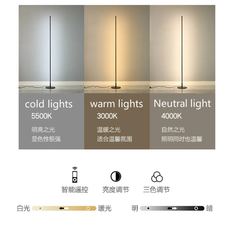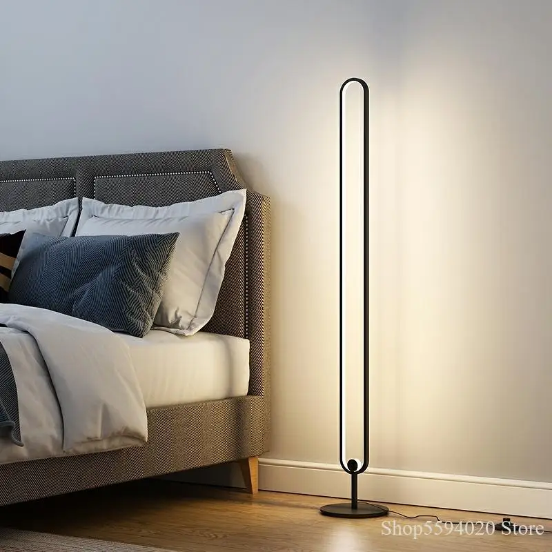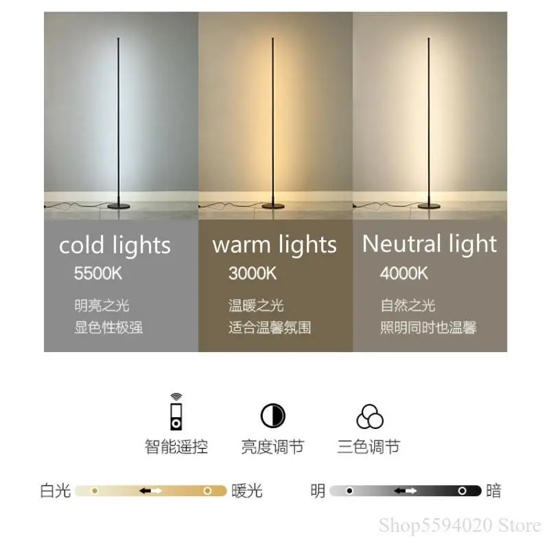 Нордическая Минималистичная светодиодсветодиодный Напольная Лампа для спальни, гостиной, атмосфера, вертикальная лампа с дистанционным управлением, приглушаемая Напольная Лампа, подставка, светильник