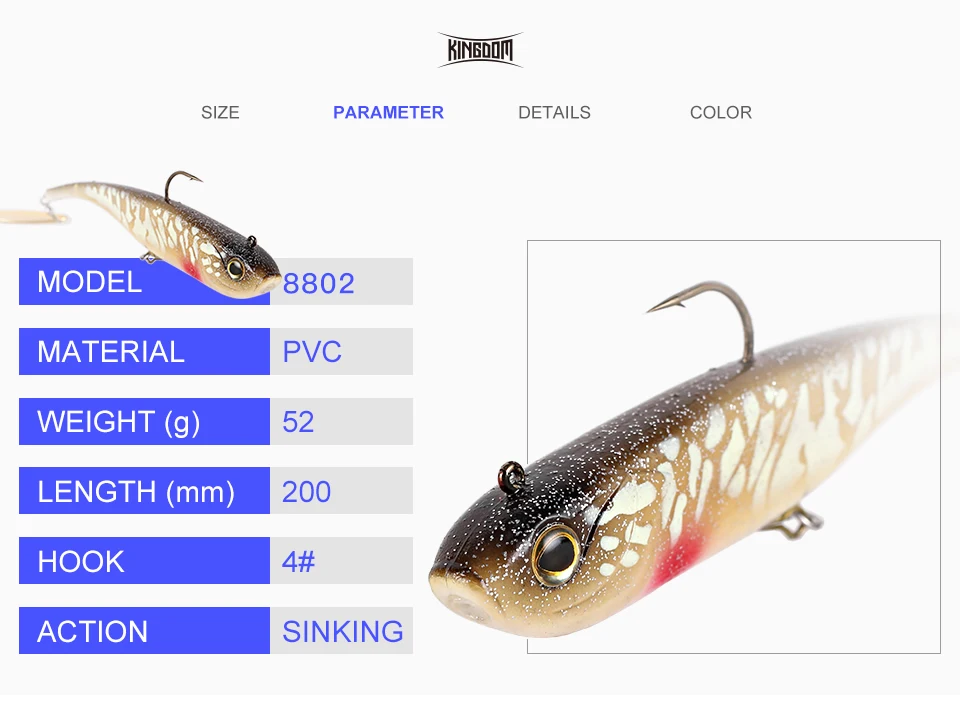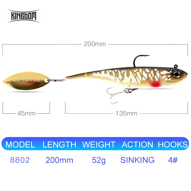 Приманки Kingdom для рыбной ловли, 200 мм, 52 г, мягкие приманки с ложкой, Тонущая искусственная приманка хорошего качества, мягкие приманки из ПВХ