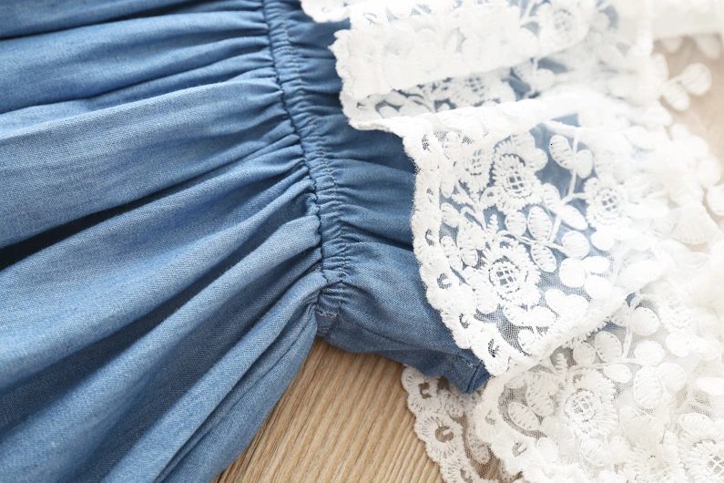 Одежда для девочек, джинсовое кружевное платье, модный наряд маленькой принцессы, бутик одежды, детская одежда для девочек