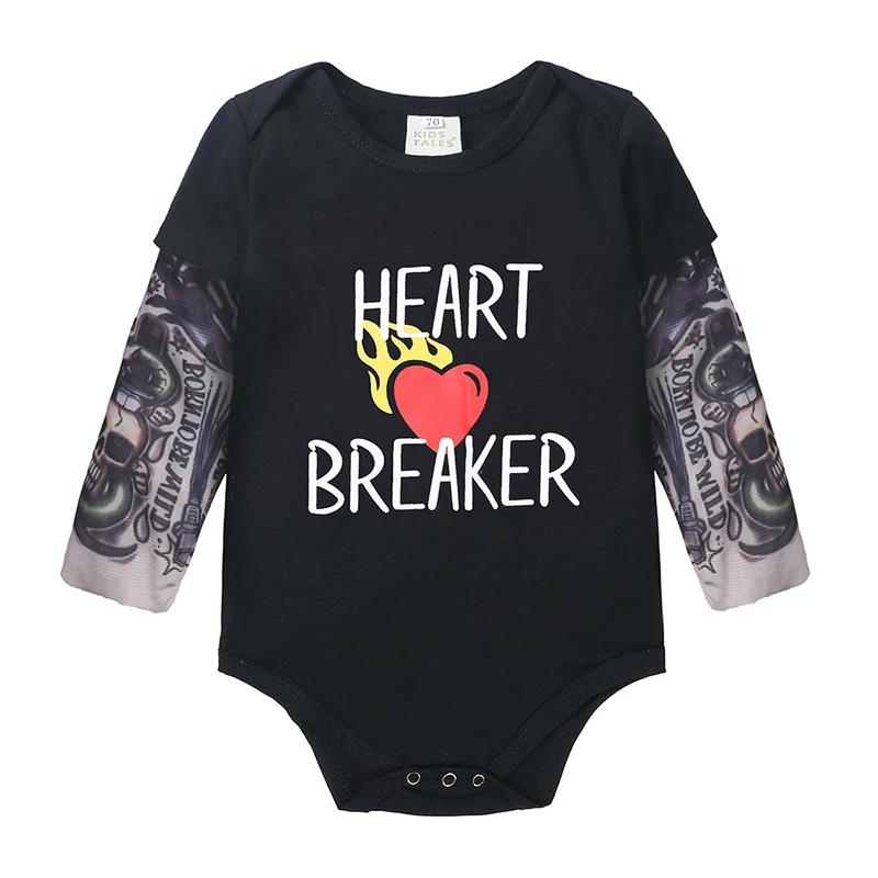 Младенцы Детские наборы модные комплекты для мальчиков и девочек с рукавами с татуировкой хлопковый комбинезон с надписью + штаны комплекты из 2 предметов крутая Одежда для новорожденных