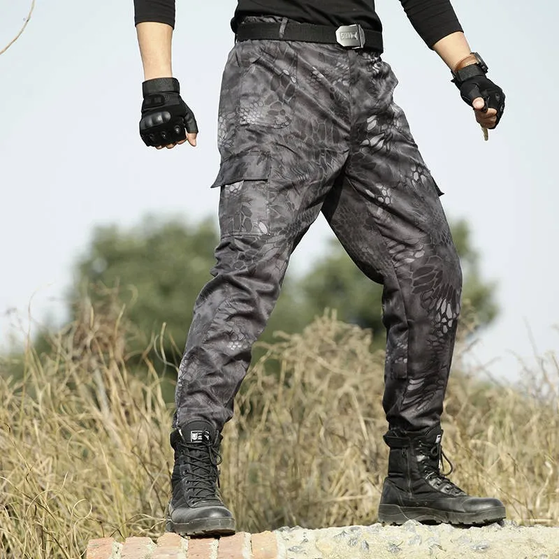 Брюки-карго мужские тактические, штаны в стиле милитари, черный питон, рабочие штаны-султанки для бега