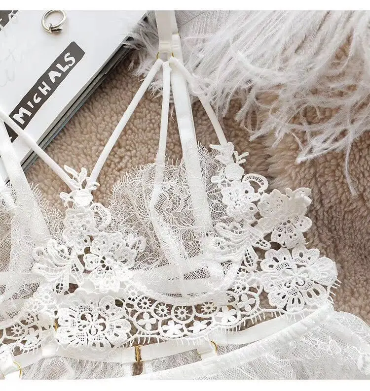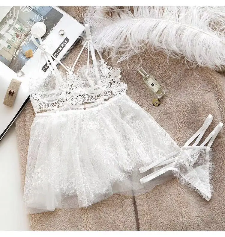 Женское кружевное нижнее белье, бюстгальтер с открытой чашкой, Прозрачное платье с завязками, сетчатая Пижама, мини-платье для сна
