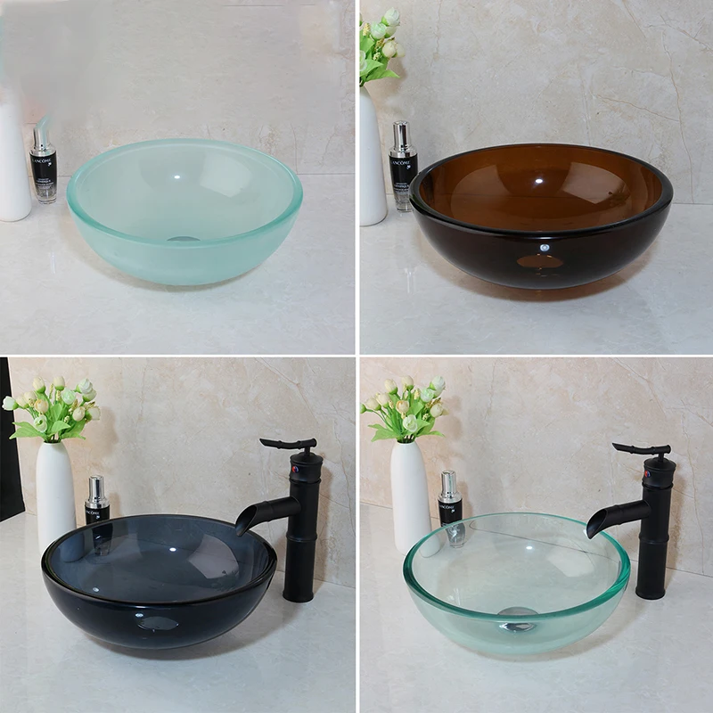 Круглая раковина Torayvino для ванной комнаты, набор для раковины с матовым черным краном, многоцветный стеклянный смеситель для раковины из закаленного стекла, комбинированный комплект