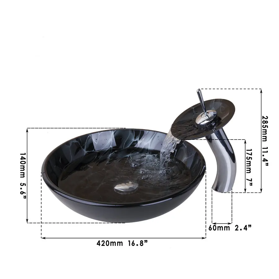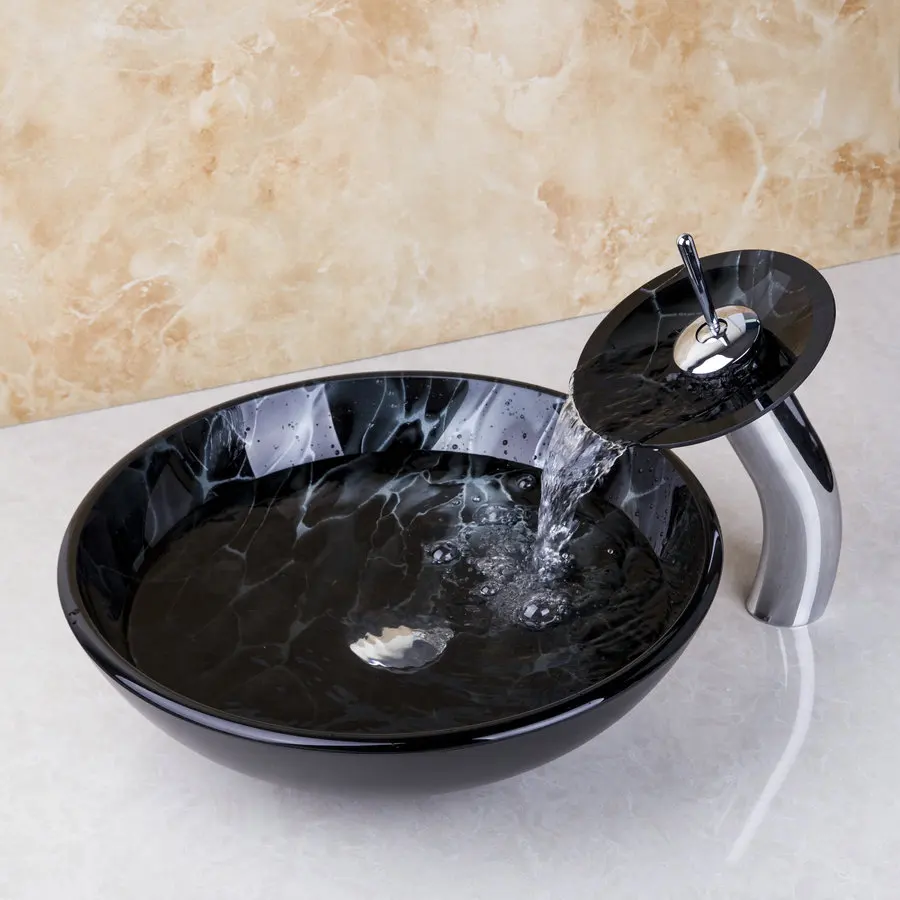 Набор для умывальника со стеклянным смесителем-водопадом, набор для умывальника, ручная роспись, черный смеситель для раковины