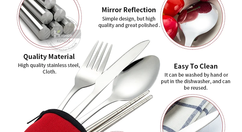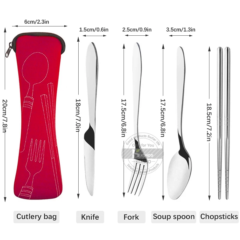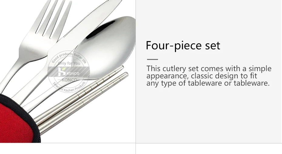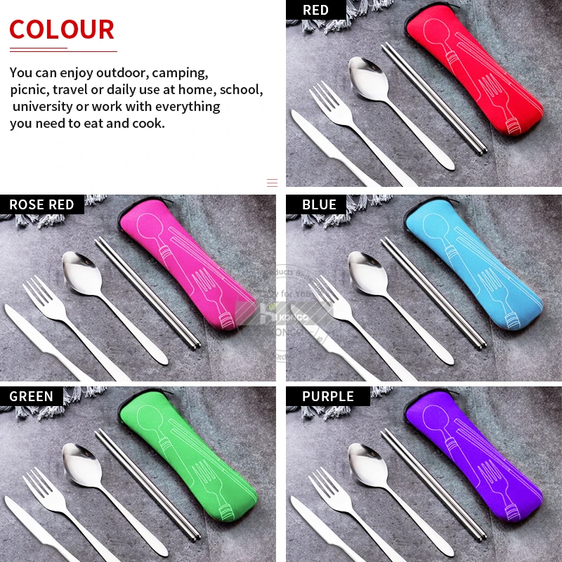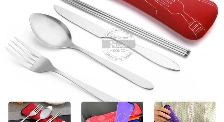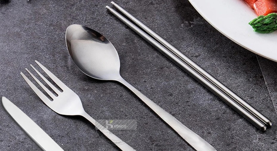 Портативный набор столовых приборов из нержавеющей стали Konco, набор столовой посуды, нож, вилка, ложка, палочки для еды, для путешествий и пикника