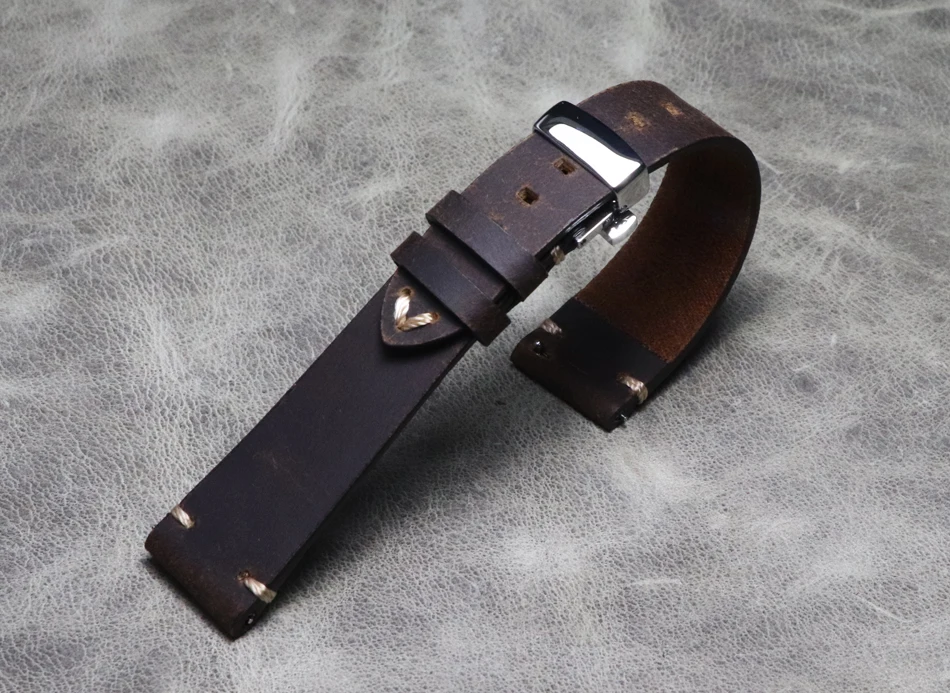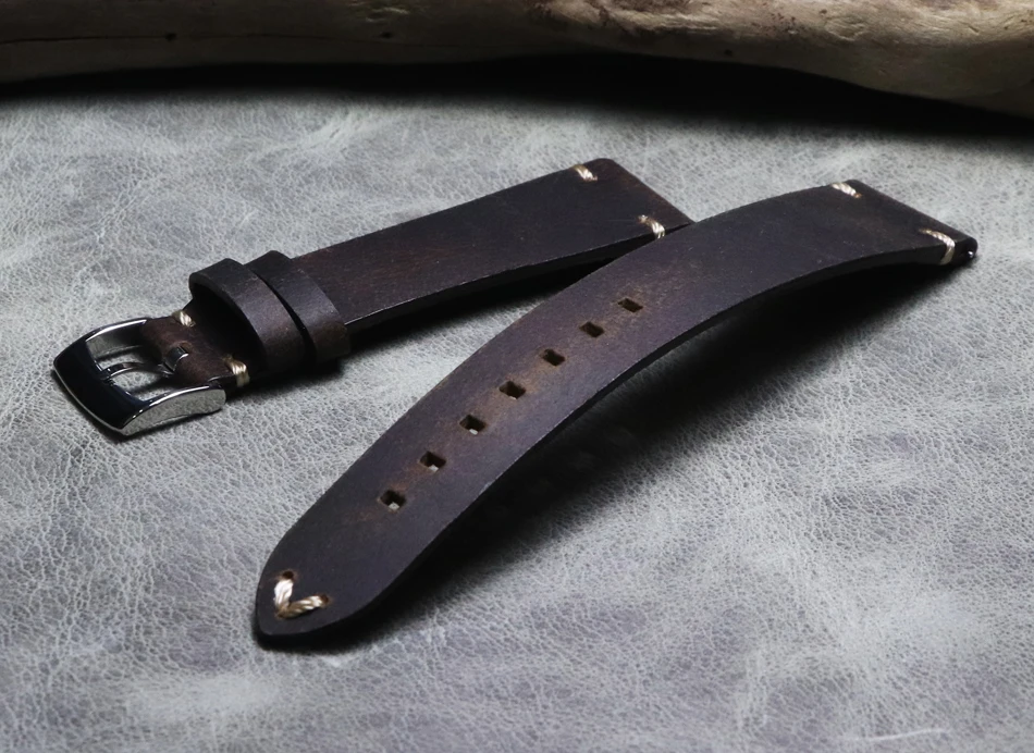 Ретро коричневый хаки синий 22 мм 24 мм Италия натуральная кожа рем...