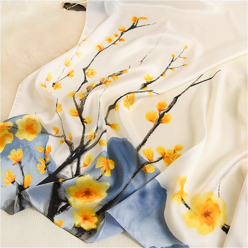 Новинка 2021, шелковый шарф для женщин, шали и палантины с цветочным принтом, элегантные женские шарфы, фуляр, Женская бандана