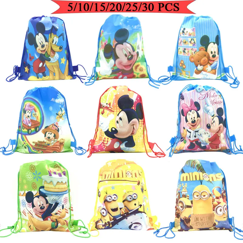 Вечерние сумки с Микки Маусом и Минни Маус для детей на день рождения, нетканый тканевый рюкзак, детская дорожная школьная сумка с декоративным шнурком