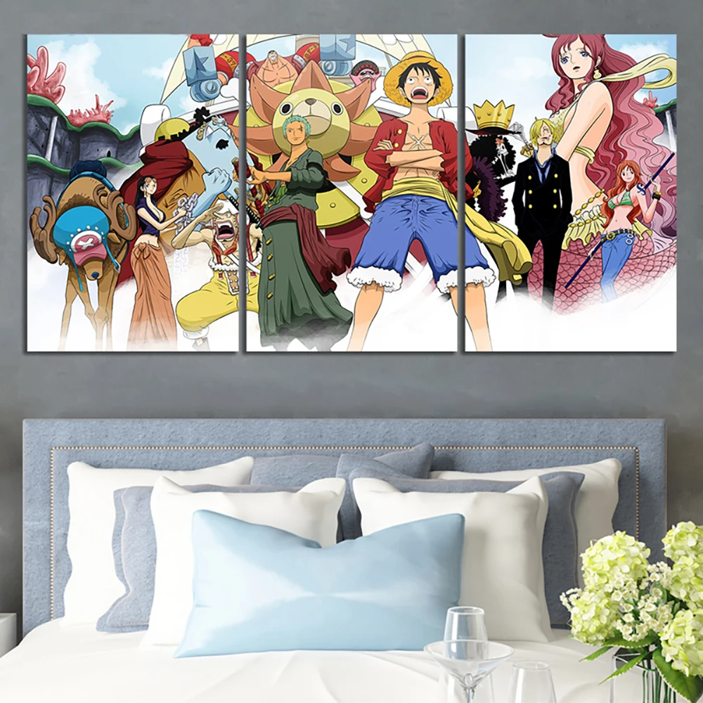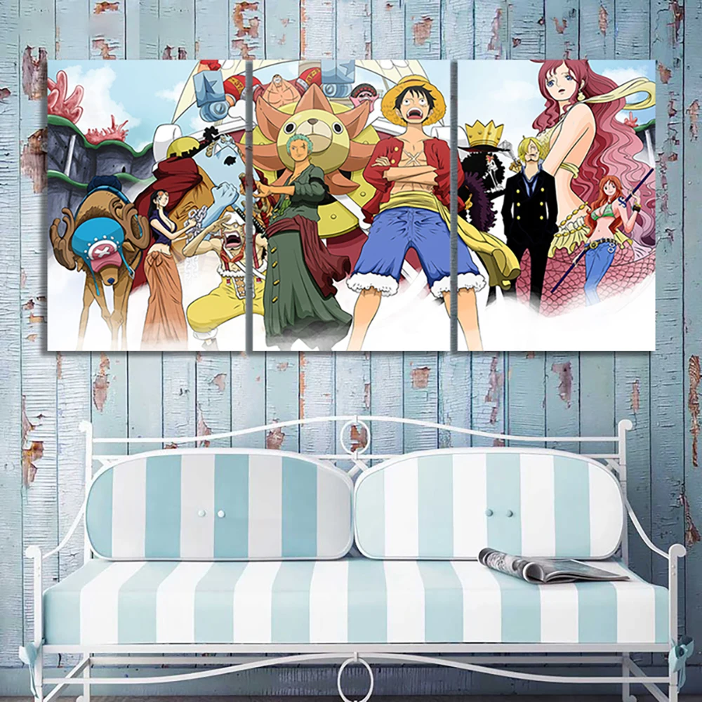 Постер для украшения дома, Картина на холсте, картина на стену из 3 частей, цельные соломенные шляпы, обезьяна Д. Луффи, модульные принты в скандинавском стиле