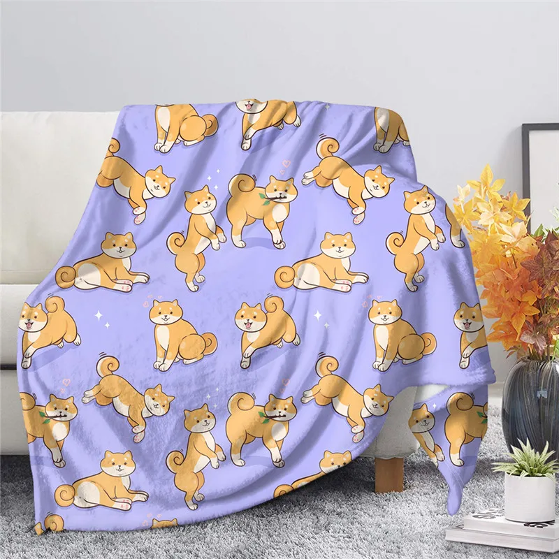 Фланелевое Одеяло с мультяшным изображением Сиба-ину, одеяло для кровати, дивана, дорожное одеяло, одеяло с милым изображением собаки, шерпа для детей и взрослых, Прямая поставка