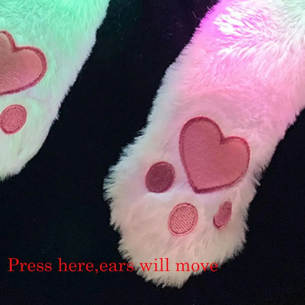 Шапка с подвижными ушками кролика, плюшевая шапка с подсветкой, под...