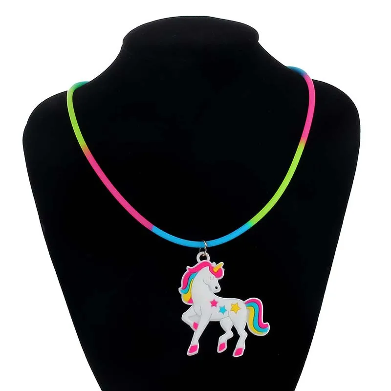 1 шт. Лидер продаж детские ювелирные изделия ПВХ единорог кулон Радуга ожерелье силиконовый воротник
