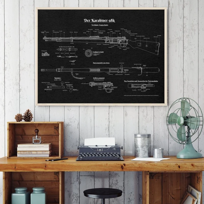 WWII K98 патент на немецкую винтовку печать плакатов немецкая армия WWII памятные вещи Blueprint художественная картина холст картины Домашний Декор стены