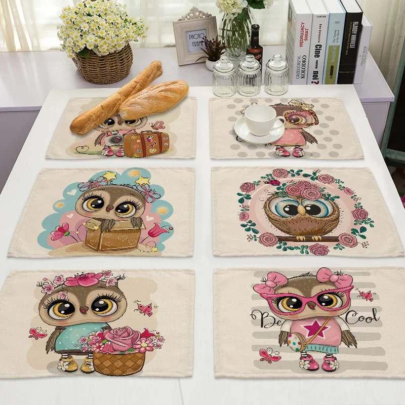 1 шт., коврик для кухни с рисунком Совы из хлопка и льна, коврик для обеденного стола, коврик для чашек, чашек, коврик 42*32 см, домашний декор ML0007