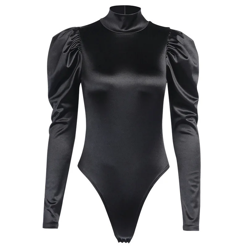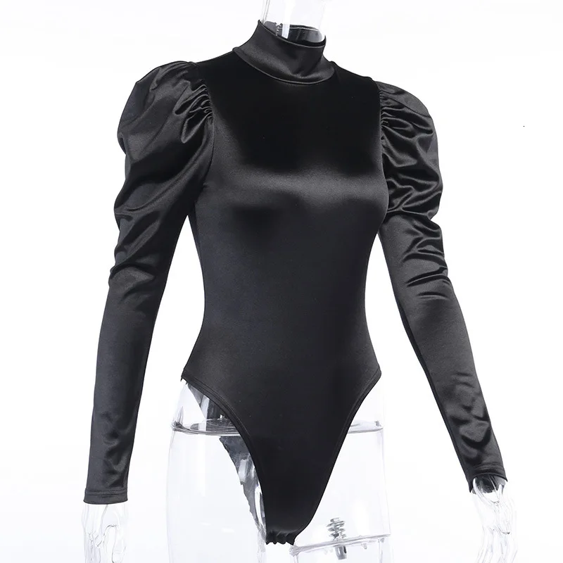 Женское боди с высоким воротником, черное облегающее боди с длинным...