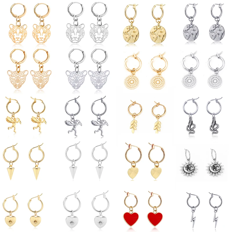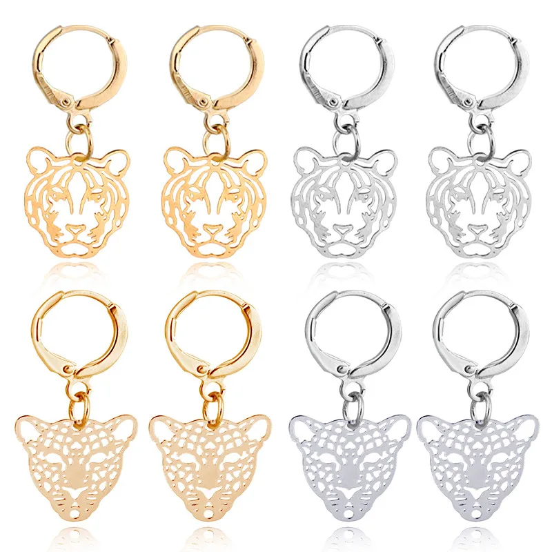 GEOMEE, 1 пара, трендовые простые серьги-кольца в форме сердца с листьями животных для женщин, милые Полые геометрические леопардовые круглые серьги, ювелирные изделия