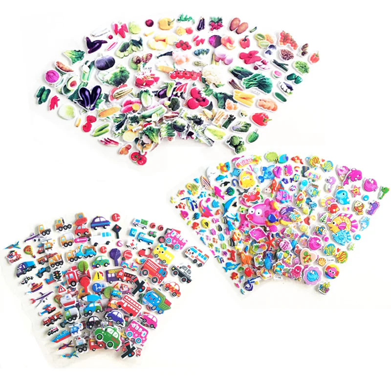 6 листов 3D Пышное пузырчатые наклейки мультфильм Животные Vegtable из непромокаемой ткани DIY Игрушки для маленьких детей подарок на день рождения Скрапбукинг учителя