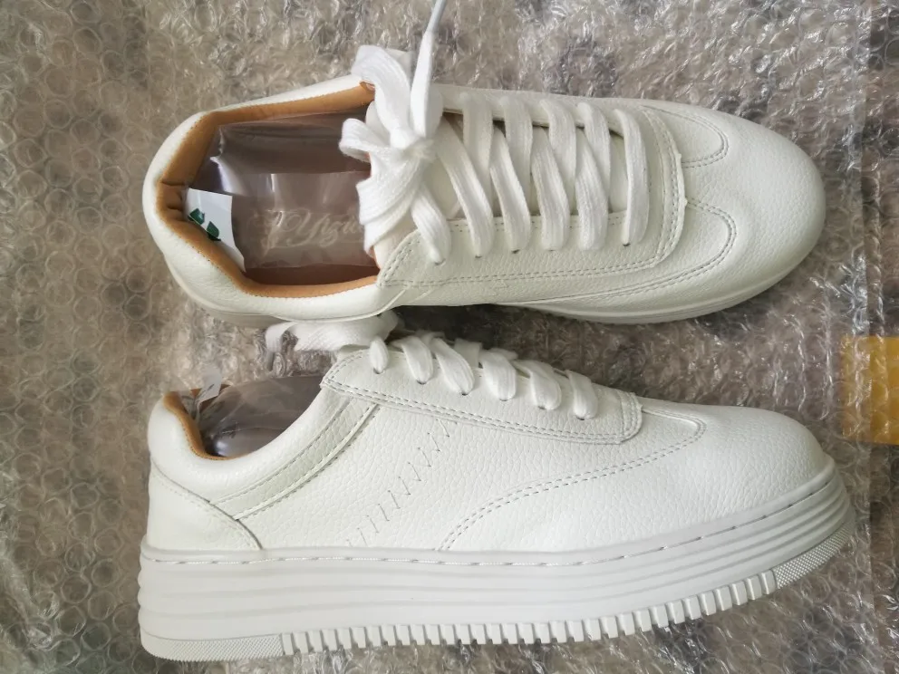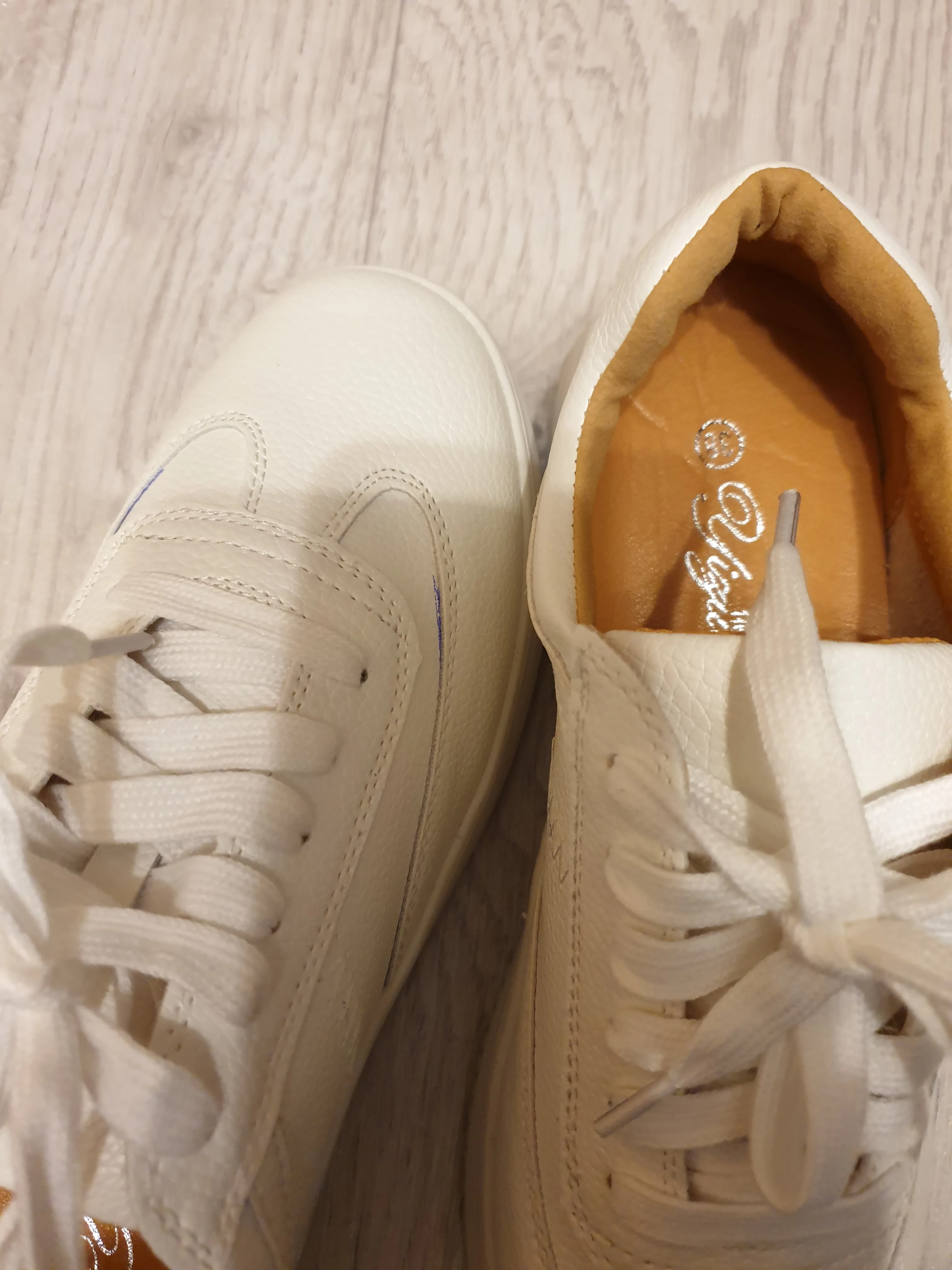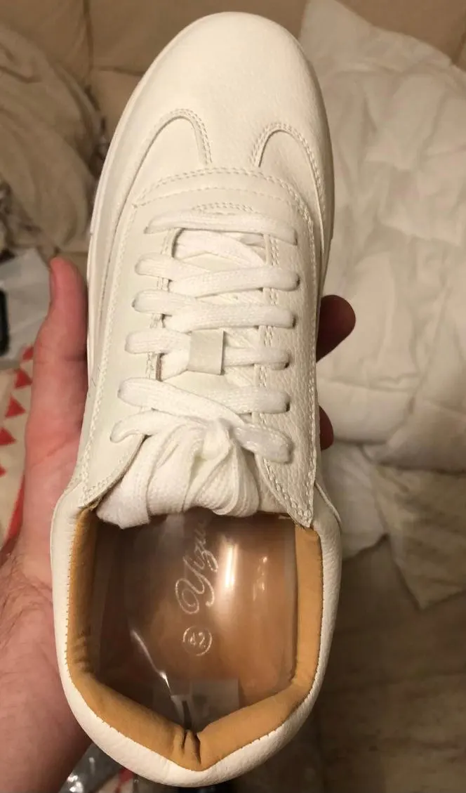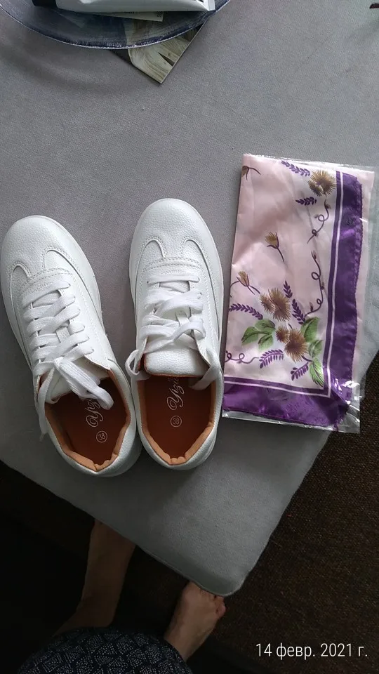 Кроссовки были хорошо упакованы. Доставка в меру быстрая. Кроссовки соответствует описанию и размерной сетке продавца. Главное правильно измерить свою стопу:) Внутри мягкая стелька и приятно ходить. В целом кроссовки мягкие и удобные. Подошва прошита и резиновая. Внутри ткань бежевого цвета, что практично более. Продавец очень общительный и добрый человек. И идёт на встречу клиенту:) Был на связи и поддерживал общение. В подарок от продавца с кроссовками пришли черные короткие носки. Огромная благодарность!!!