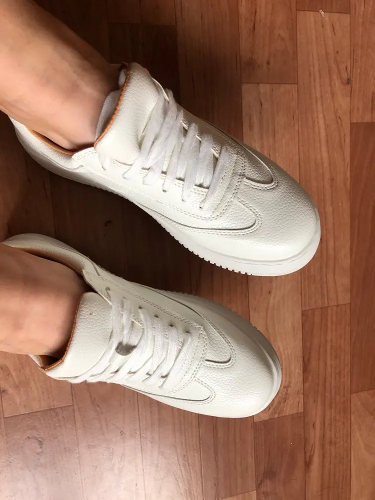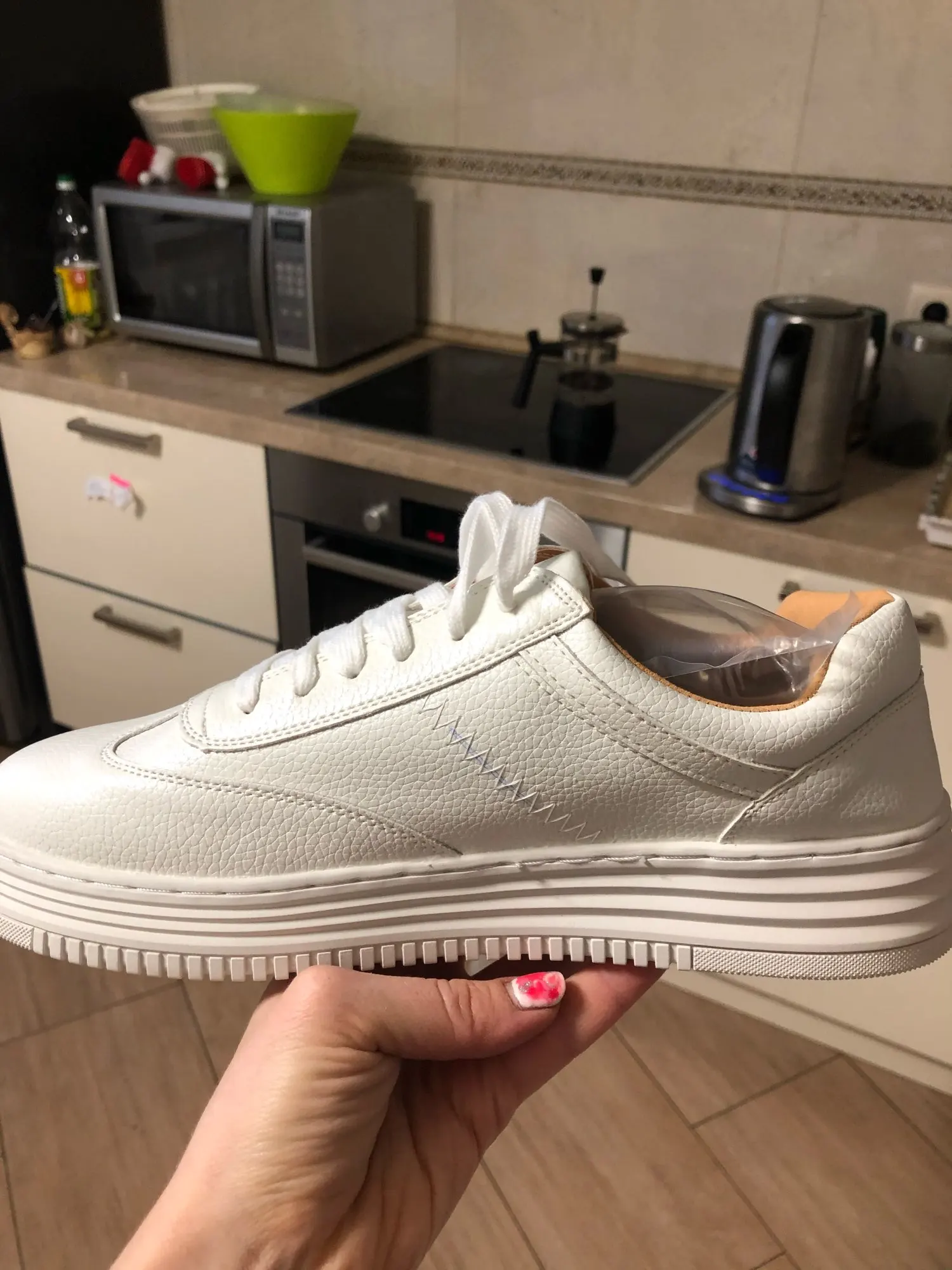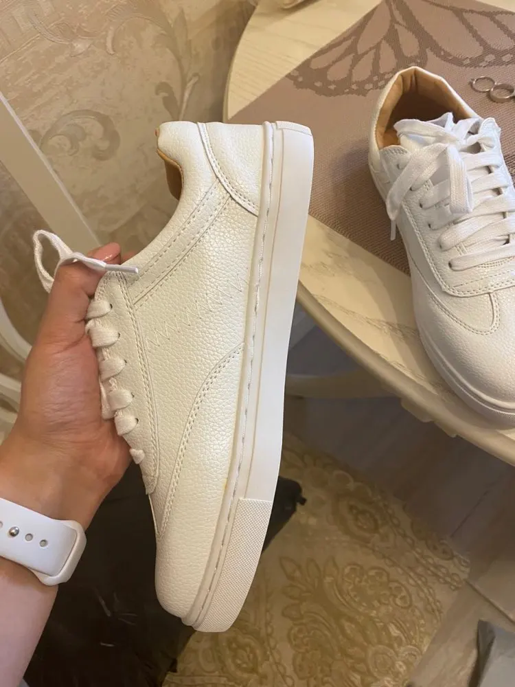 Очень классные кроссовки, но не подошёл размер, на свою стопу 23см, взяла 23,5 37 размер, оказался почти впритык, но из-за широкой передней части стопы, есть косточка, ходить невозможно, сдавливает. Кожа плотная, не просто растягивается, а жаль, на ноге сидят очень аккуратно и стильно, брала с купоном за +- 1500рб, сейчас стоят дороже (( учитывайте ширину стопы