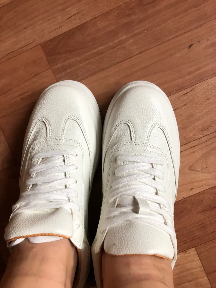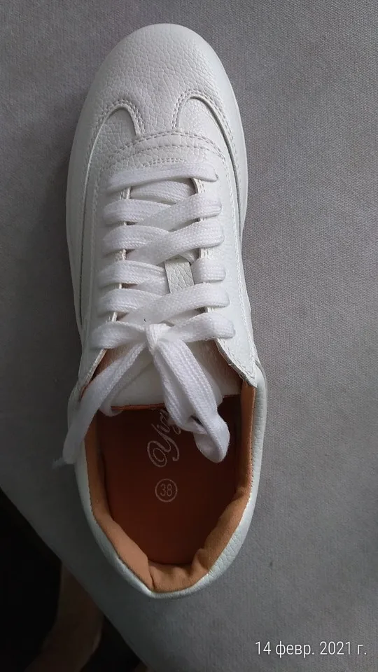 Заказ пришёл быстро, в подарок положили носки. Мой размер 36, узкая нога, заказала самый маленький размер. Внутри обуви написано 35, на тонкие носки сидит впритык. Можно было взять на размер больше, но надеюсь что ещё растянется. Обувь выполнена аккуратно, буду теперь смотреть в носке