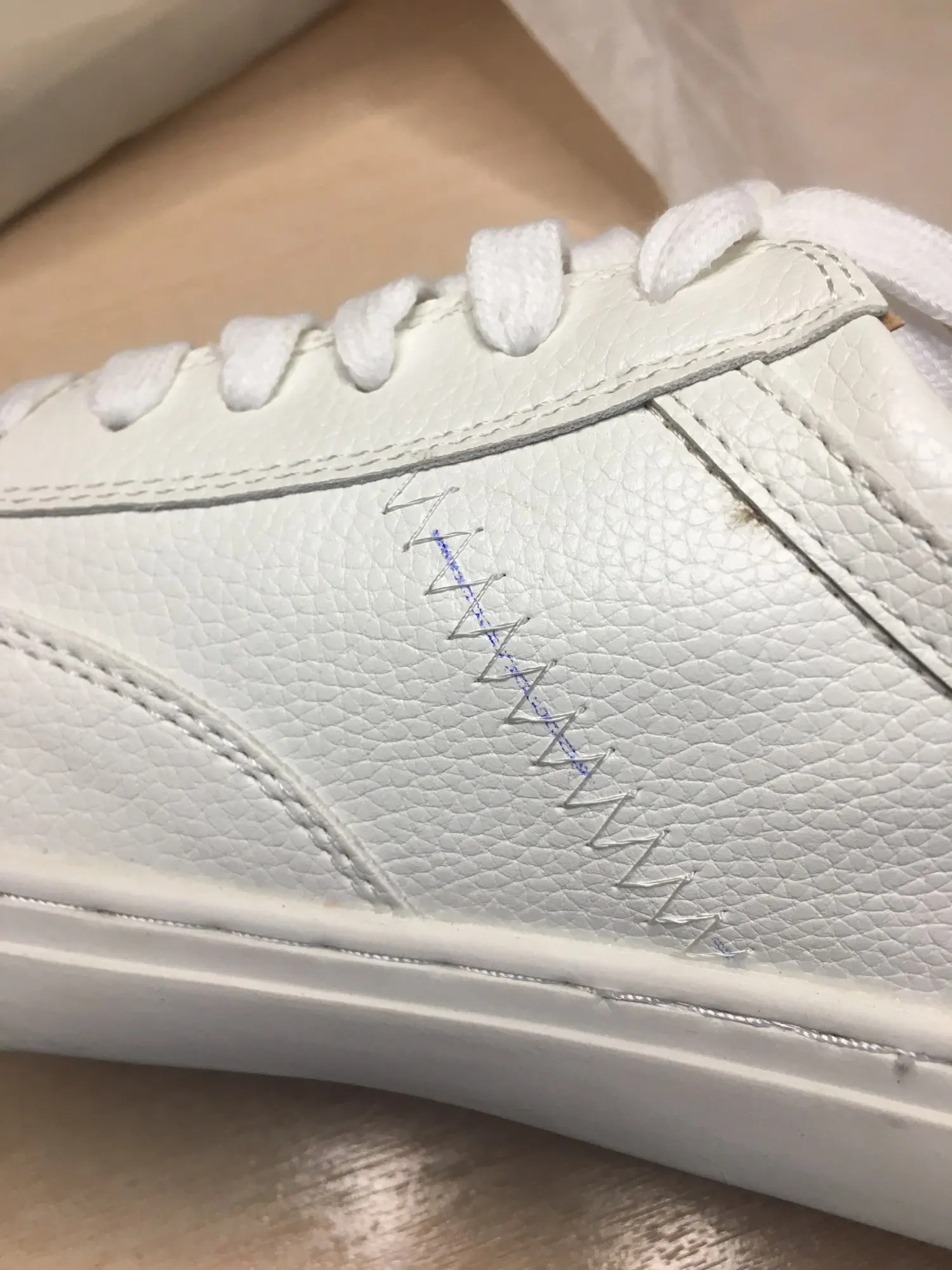 доставка месяц. хорошие кожаные кеды за такую цену. есть следы от ручки. за это получила компенсацию. надеюсь смогу оттереть. на стопу 24.5 подошли. можно теплый носок одень