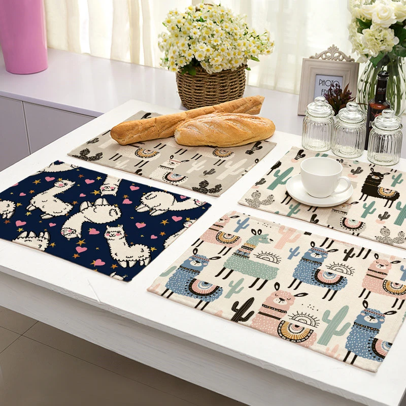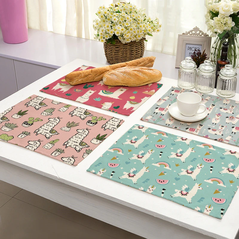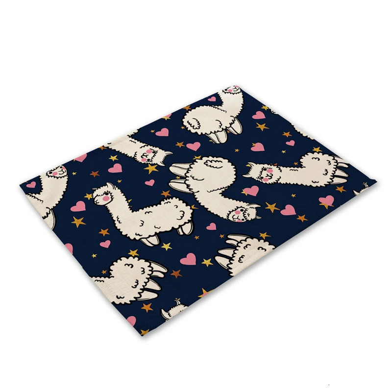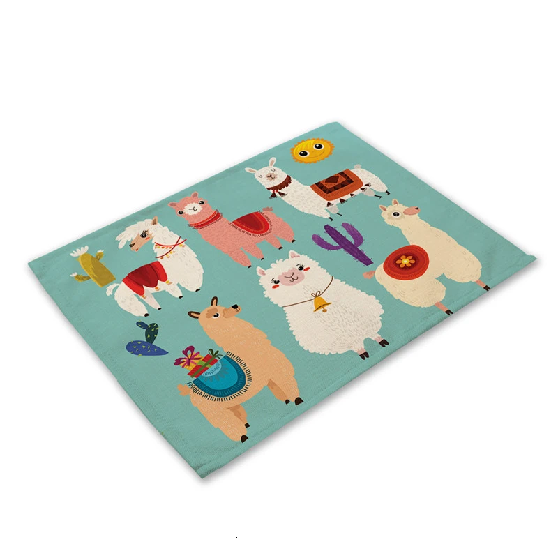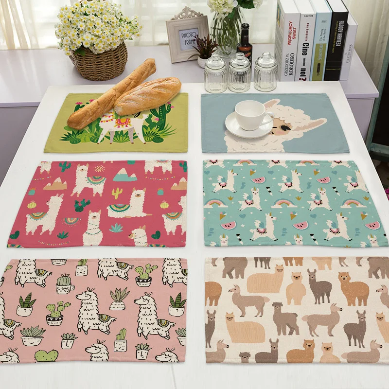 Хлопковые и льняные коврики для обеденного стола, с рисунком ламы, ...