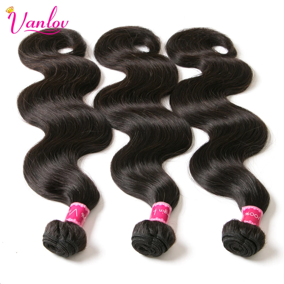 Vanlov бразильские волнистые волосы, человеческие волосы, волнистые волосы, наращивание, натуральныечерные, Реми 3 шт.Лот, пучки волос, сделки