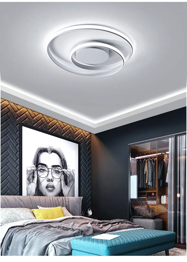 Люстра светодиодный с поверхностным креплением, современная лампа белого и черного цвета для гостиной, спальни и учебной комнаты, декоративный светильник