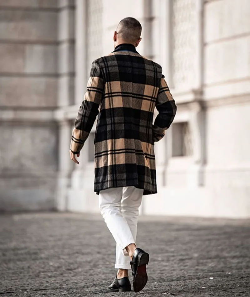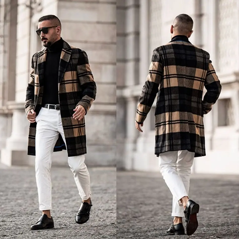 2020 мужской твидовый Блейзер на одной пуговице с отворотами в клет...