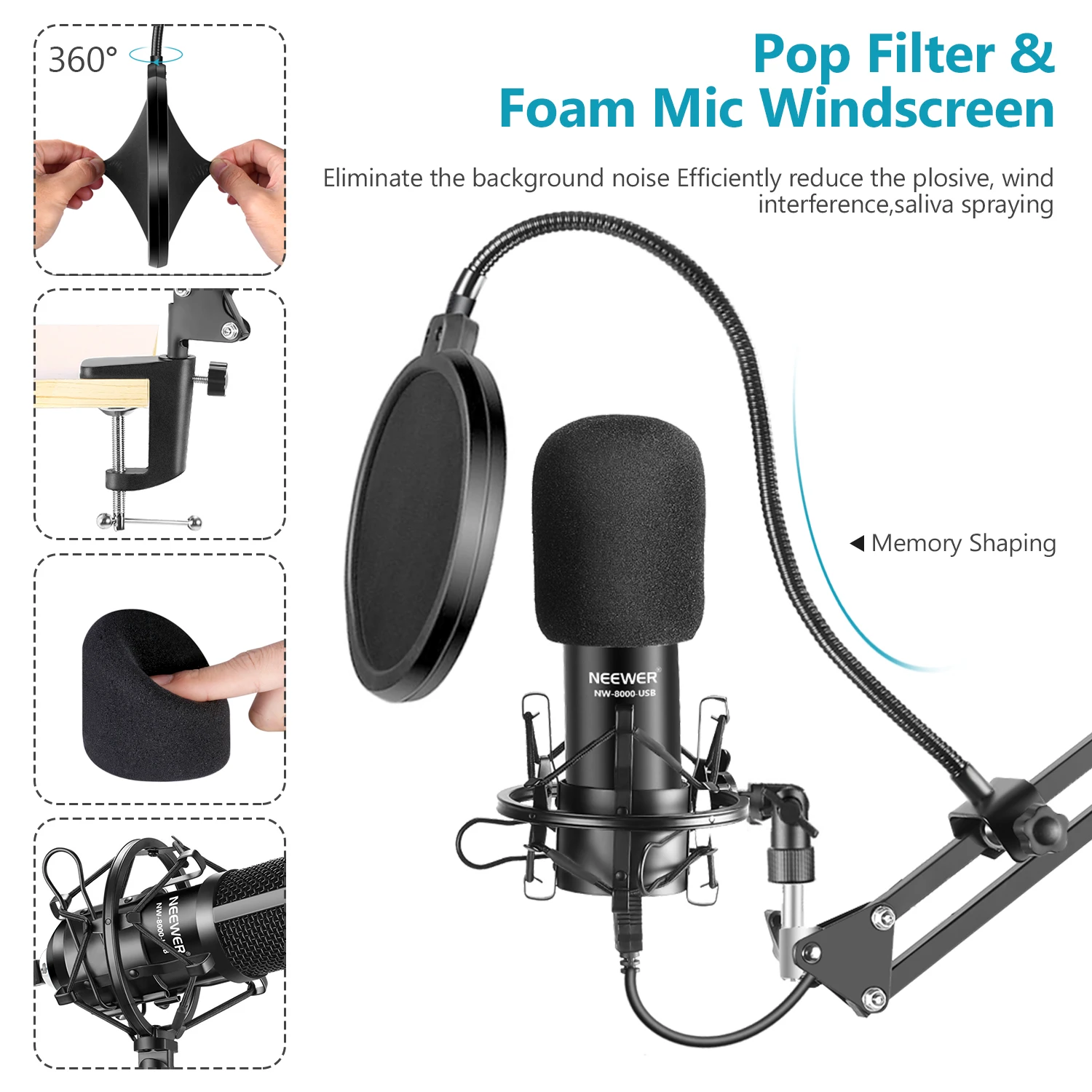 USB-микрофон Neewer, Гиперкардиоидный конденсаторный микрофон 192 кГц24 бит, для записи видео на YouTube, потоковых игр, подкастинга, звонков по скайпу
