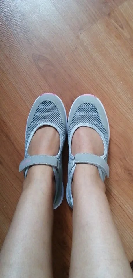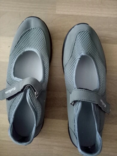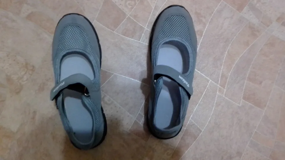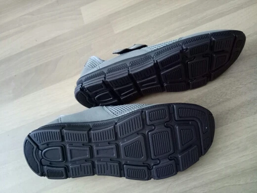 Шузики до Новосибирска пришли довольно быстро. Покупала маме на лето. Наилегчайшие! Подошва такая же. А верх отличается от фото - 3 оттенка серого:) Тесьма, сетка и ткань типа тонкого фетра - все разного оттенка серого цвета, смотрится не очень. Как бы дешевит. Липучка хренового качества. На узкой ноге будет болтаться, на средней сидит хорошо. И подойдет на широкую ногу. Брали 40 размер, 25 см - ноге свободно, как будто большемерит на 0.5 размера. Мне больше всего в них понравилась сеточка - мягкая и с виду крепкая, дышащая, спортивная.