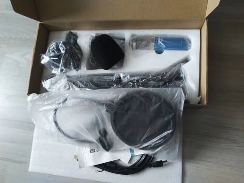 Посылка: NW-8000-USB микрофон, NW-35 стрела, ударное крепление, поролоновое ветровое стекло, поп-фильтр, Настольный зажим, USB-A-B кабель, руководство пользователя