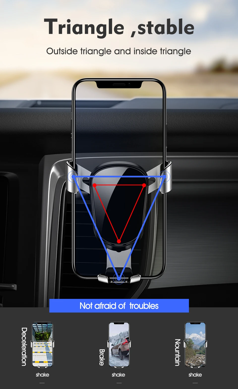 Он работает по весу одного и того же мобильного телефона. Опуская Нижний Кронштейн, крылья закроются на мобильный телефон, чтобы держать его. Я уверен, что он не упадет. На задней части он имеет круговой вал, который позволяет опоре быть ориентированным, и зажим достаточно сильный. У меня есть только сомнения в том, как он будет работать на пути с rips.